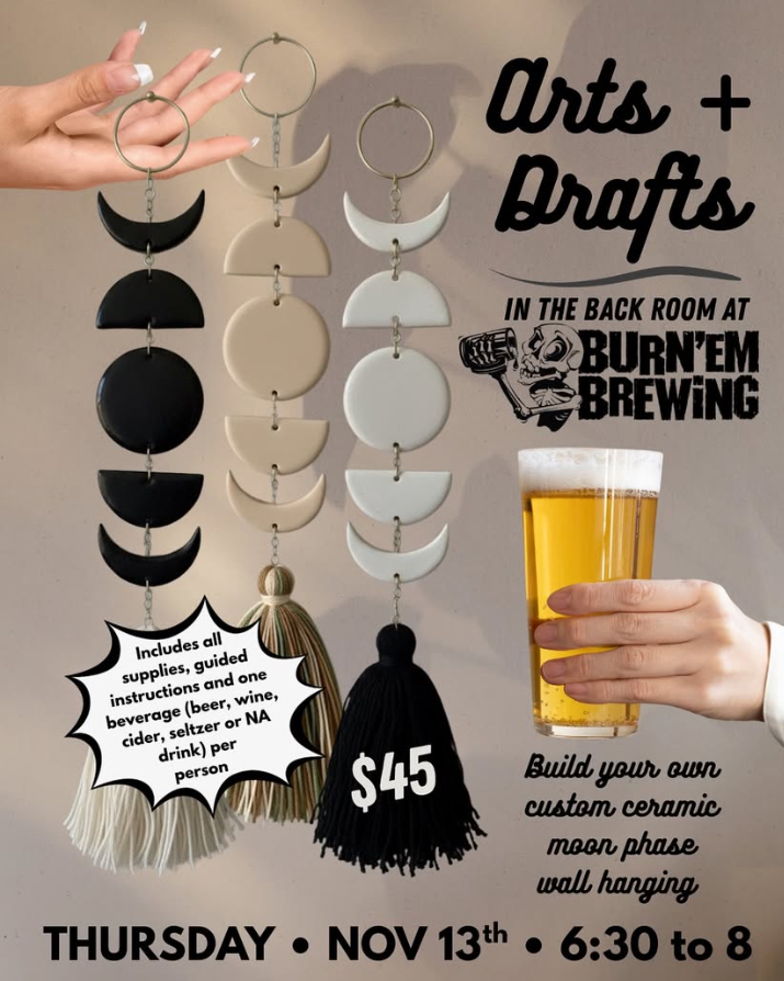 $45 Per Person includes all supplies, guided instructions and one beverage (beer, wine, cider, seltzer or NA drink)