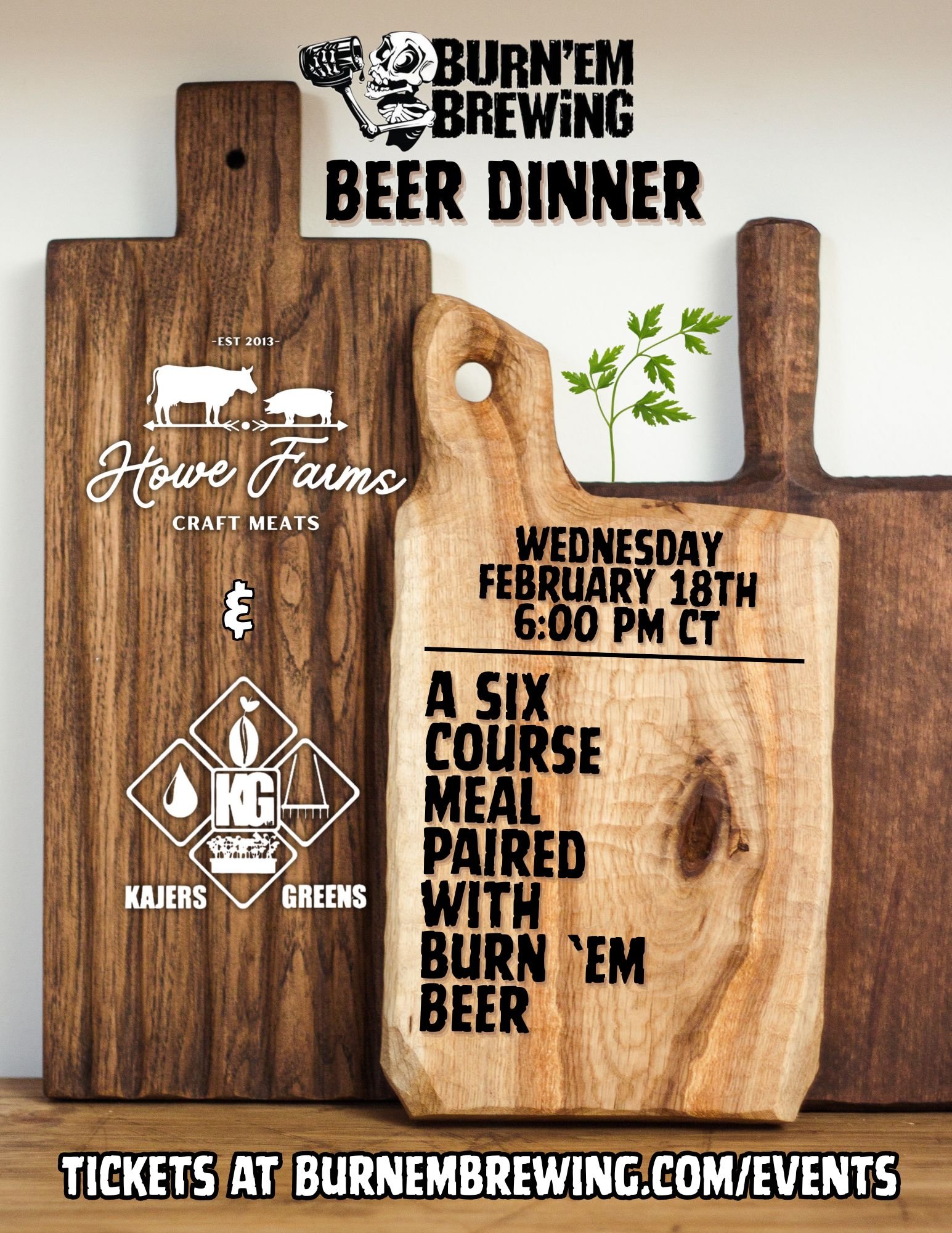 Join us Wednesday February 18th at 6pm for our second in-house beer dinner!
