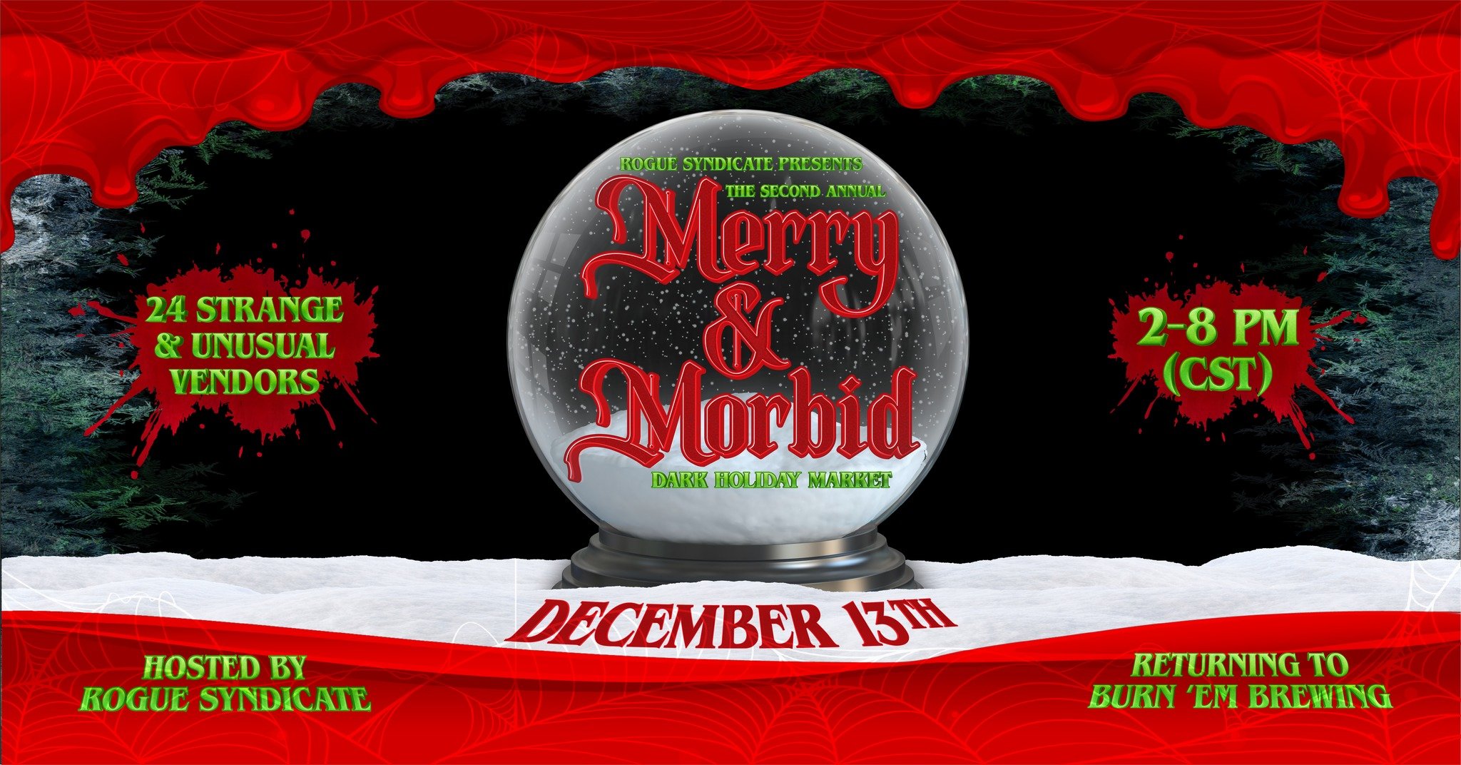 From the creators of The Bizarre Bazaar, we bring you The Second Annual Merry & Morbid dark holiday market! It will showcase the dark & spooky vibes we are known for just on a smaller scale. There will be around 30 unique artists, makers & purveyors for you to find something for all the ghouls & goblins on your list! This is our third market at Burn ‘Em Brewing and we are so excited to continue growing!