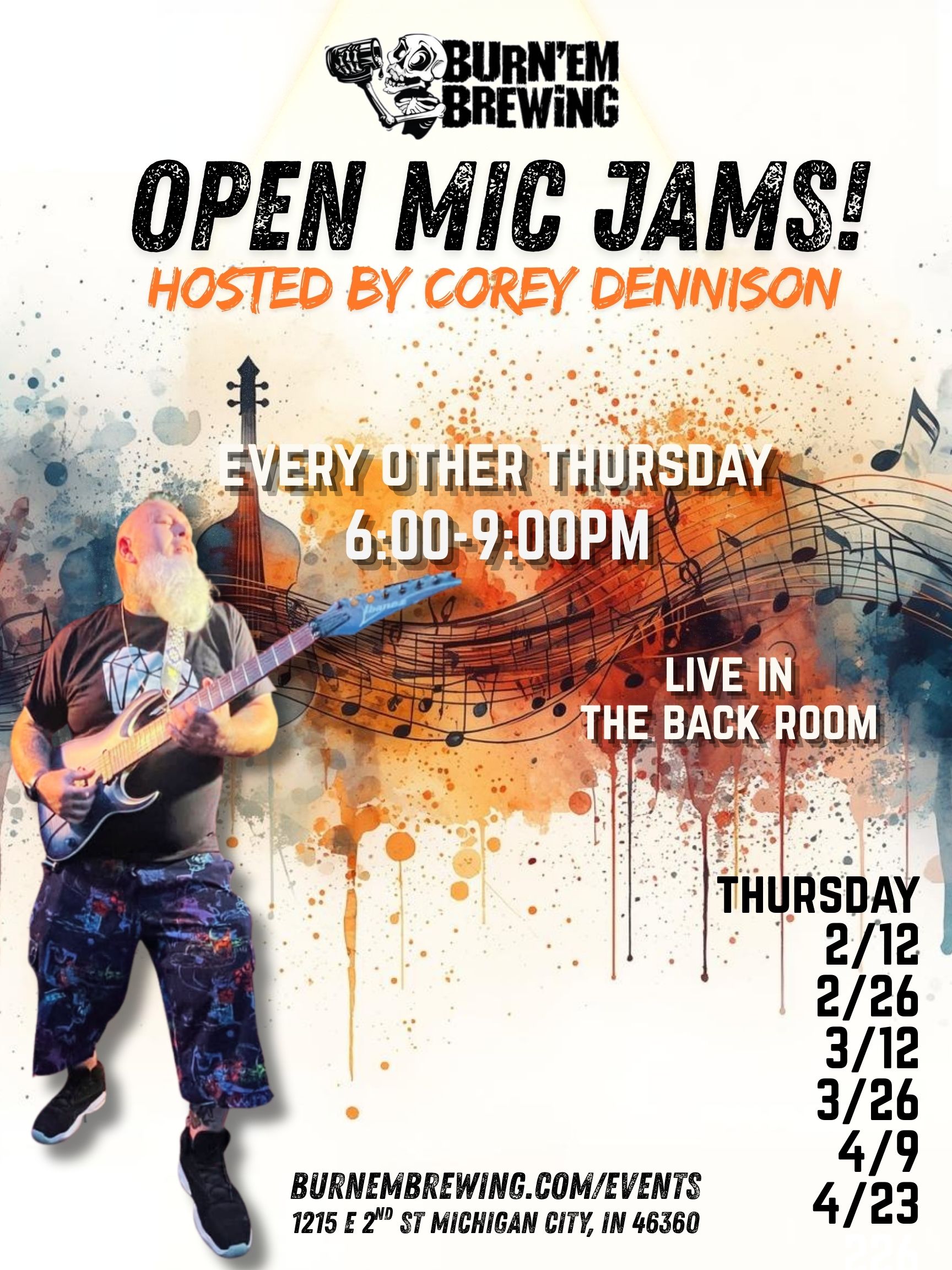 Corey Dennison is hosting Open Mic Jams every other Thursday in The Back Room at Burn ‘Em!