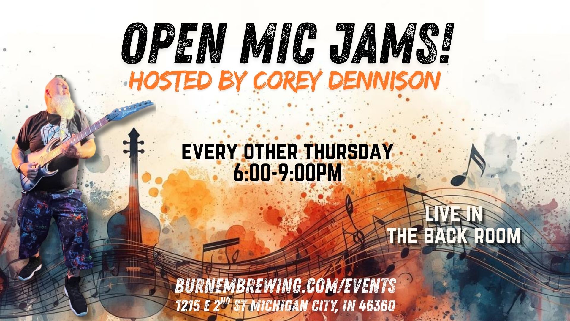 Corey Dennison is hosting Open Mic Jams every other Thursday in The Back Room at Burn ‘Em!