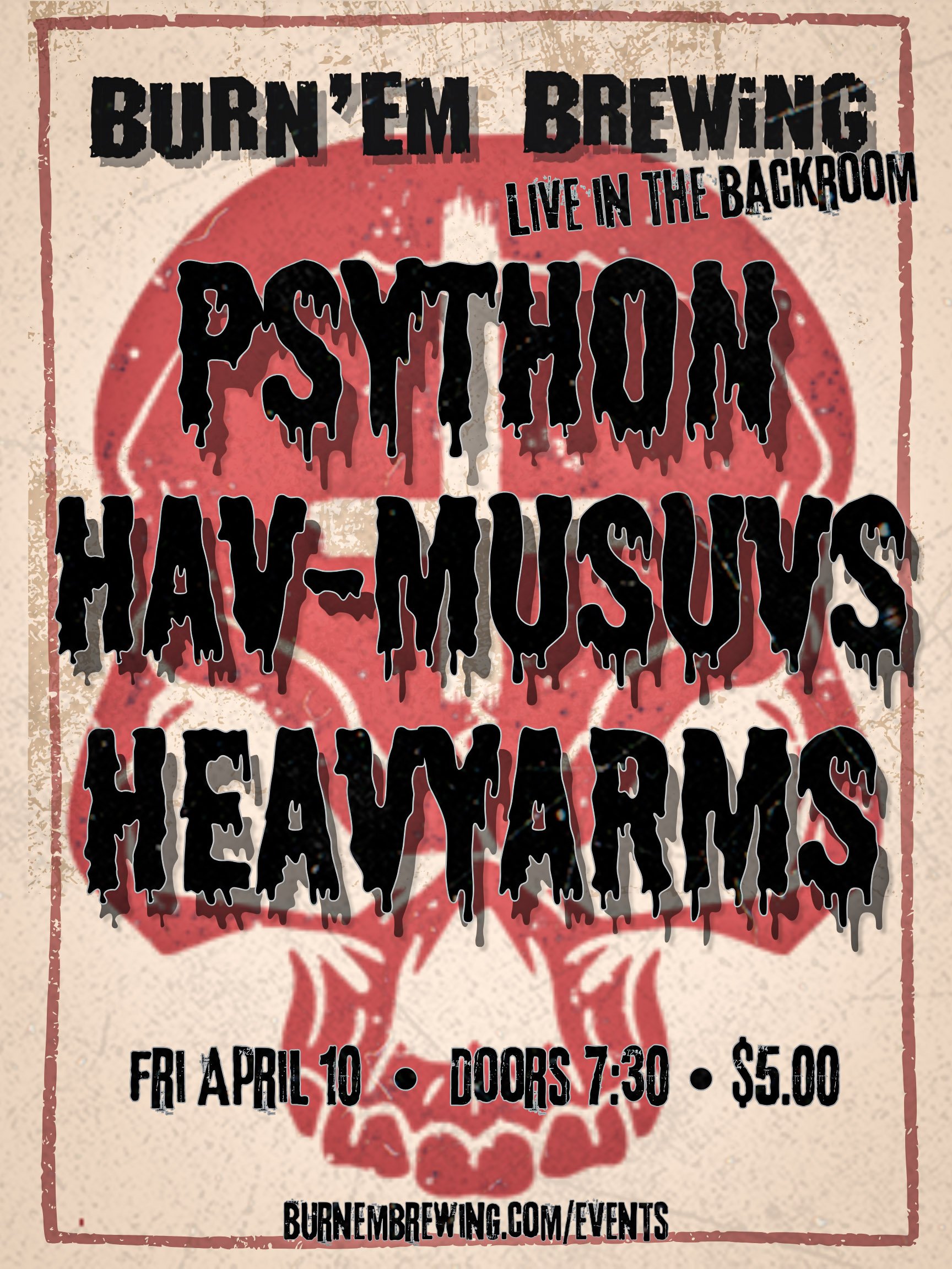 Psython, Hav-Musuvs and HeavyArms are invading The Back Room for a rowdy night of heavy metal and beyond!